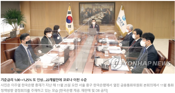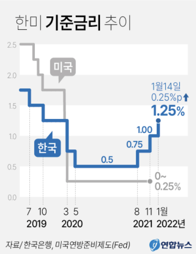 최근 한국은행이 기준금리를 연 1%에서 1.25%로 0.25%포인트 인상했습니다. 2021년 8월과 11월에 이어서 추가 연속 금리 인상으로 코로나 확산 이전 수준으로 되돌아갔습니다.