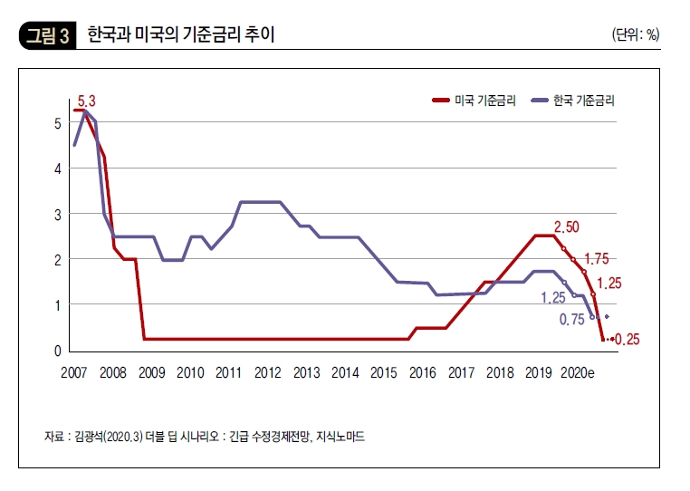 코로나19가 전 세계적으로 확산되면서 글로벌 경기둔화에 대한 우려로 인해 2020년 3월에 한국은행은 기준금리를 인하하였습니다. 금리가 내리면서 돈을 빌리는 부담이 줄어들어 가계는 소비가 늘고 기업은 투자를 확대할 수 있었습니다.